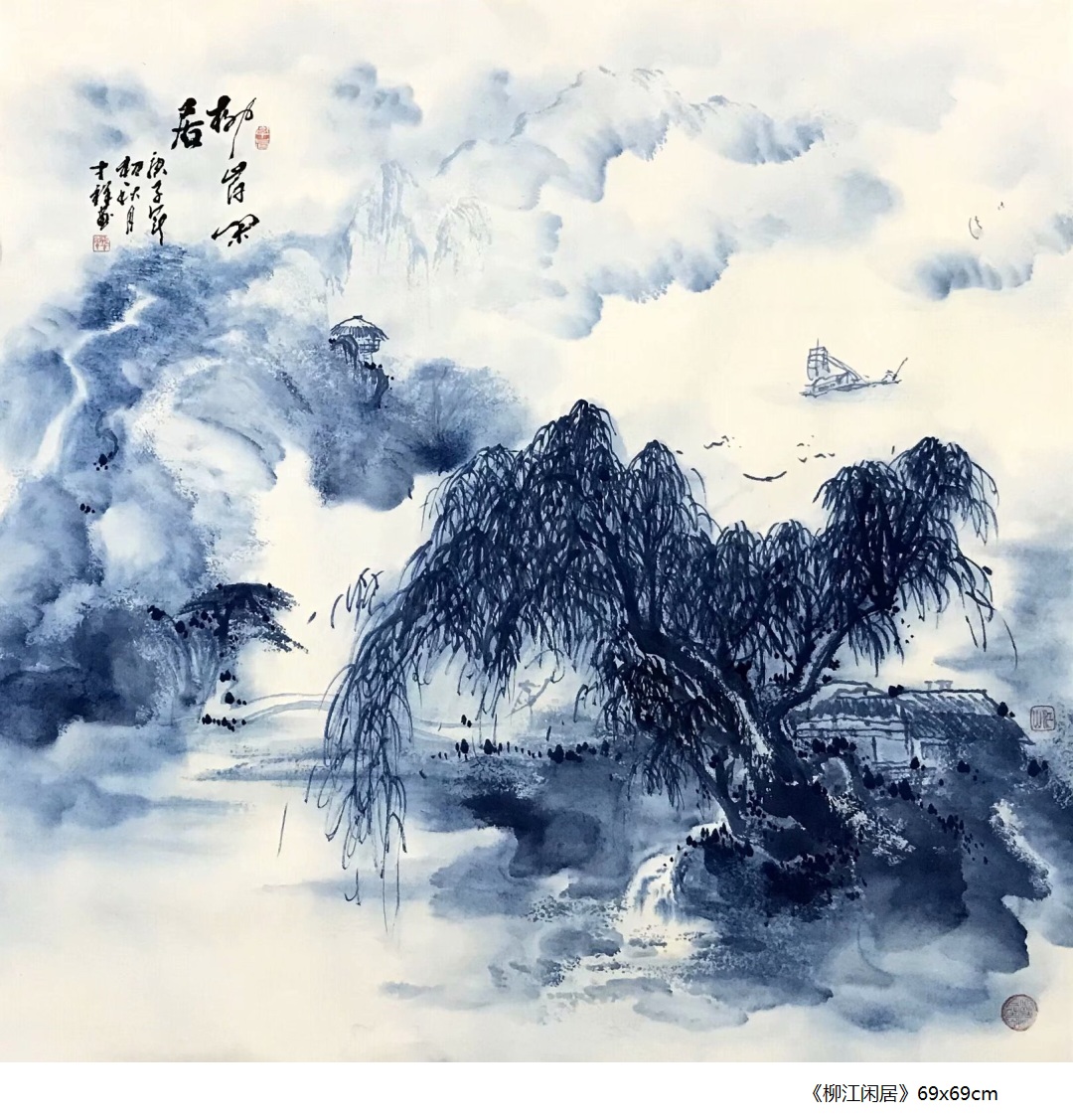 2019年6月8日代表作《烟嵐江南》青花山水斗方入选并获奖法国巴黎第158届国际艺术沙龙奖。