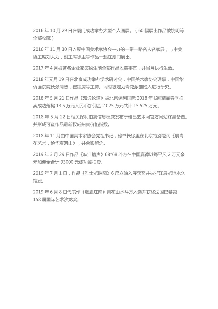 2017年4月被著名企业家签约生前全部作品收藏事宜,并当月执行生效。
